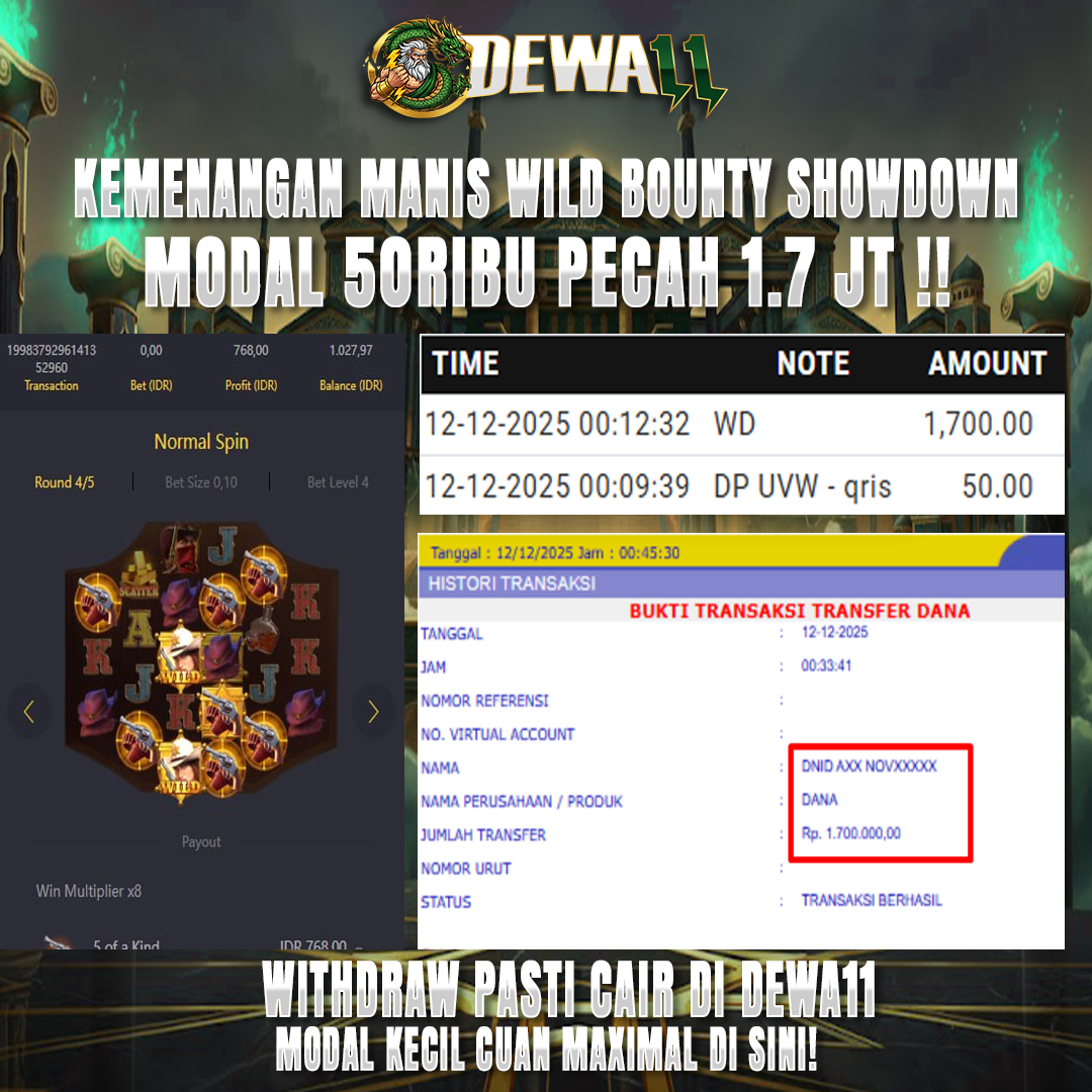 DEWA11 menghadirkan game jackpot vip yang di lengkapi fitur khusus new member hanya dengan modal deposit 50k dijamin akan withdraw 1,7 juta malam ini.